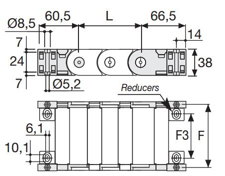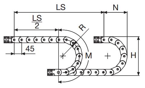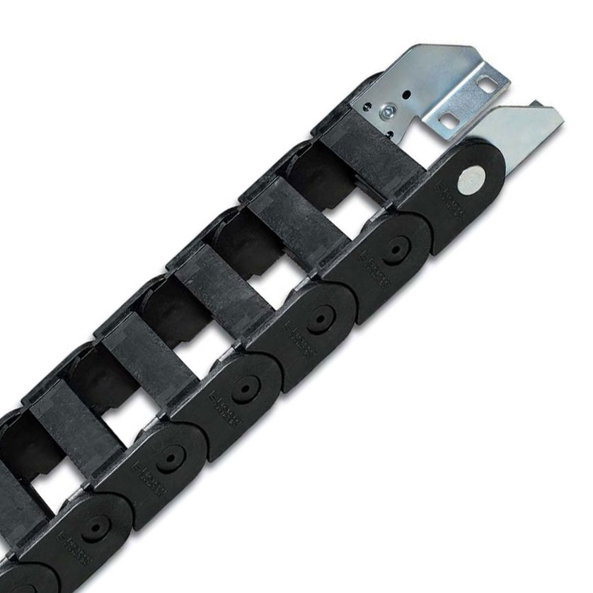 內(nèi)部高 (D) 25 mm,尼龍拖鏈帶有大的中心抗磨銷軸的單鏈節(jié)結(jié)構(gòu),同樣抗扭抗拉??梢蕴峁┐怪钡姆指羝?/span>如果使用導(dǎo)向槽,這種拖鏈特別適合長行程應(yīng)用。