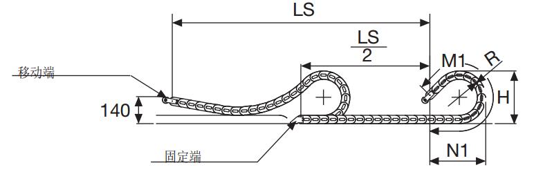 尼龍拖鏈從彎曲段外側(cè)/內(nèi)側(cè)固定